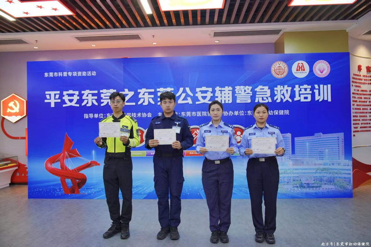 2026年4月23日,由东莞市科学技术协会指导、东莞市医院协会主办、东莞市妇幼保健院承办的“平安东莞之东莞公安辅警急救培训”科普活动圆满落下帷幕。闭幕式在东莞市公安东城分局举行,标志着历时一个月公安民辅警的系统性急救技能培训项目顺利完成。