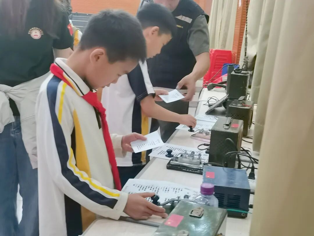 从百年无线电发展到摩斯密码,从红色电波到现代国防技术,最让同学们兴奋的是实操环节——亲手收发摩斯密码,清脆的“滴答”声中,科技报国的理想瞬间点燃。