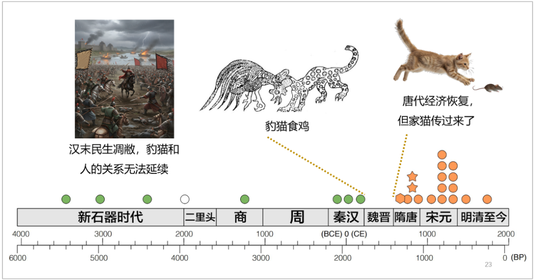 这个时候,我们再去看豹猫消失的时间,发现刚好是在汉末,中国发生了剧烈的社会动荡、民生凋敝。那么我们自然可以想到,当老鼠不在了的时候,用来抓老鼠的猫也就不会再生活在我们的周围了。
