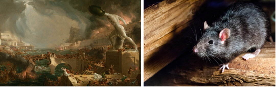 这个时候,我们在另外一项工作里得到了灵感。我在博士后阶段曾经开展过一项研究,关于我们身边另外一种不太讨人喜欢的小动物——老鼠。我对欧洲的老鼠进行遗传学研究的时候发现,罗马帝国崩溃之后,欧洲的老鼠曾经经历了一个非常明显的种群衰退,可能反映了老鼠要依靠人类的余粮生活。在帝国崩溃之后,社会的经济受到了很大的破坏,人没有余粮了,老鼠也就不会生活在人类身边了。