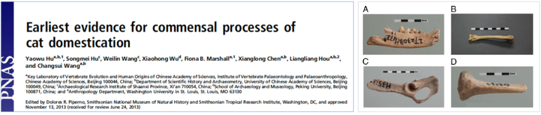 左:考古学研究文章 右:新石器时期陕西泉护村遗址出土猫骨骼