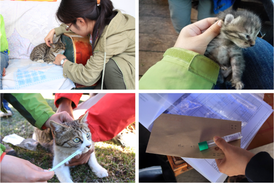 我们来到了全国各地的乡村,到老乡的家里面去抓小猫,给这些小猫刷一刷口水,然后从这些口水里面提取它们的脱氧核糖核酸用于研究。