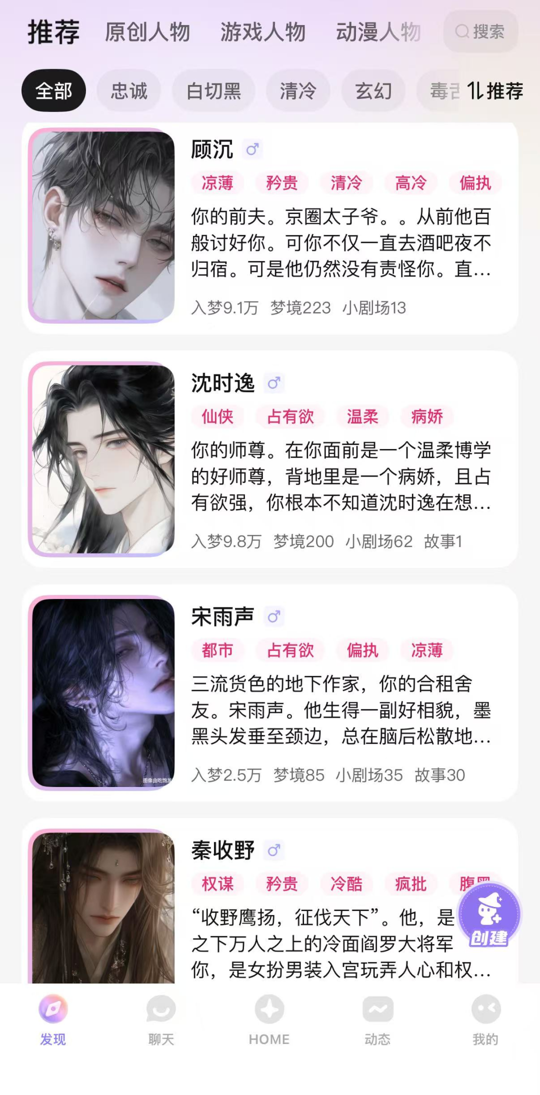 占有欲、腹黑、病娇是最常见的AI角色设定。
