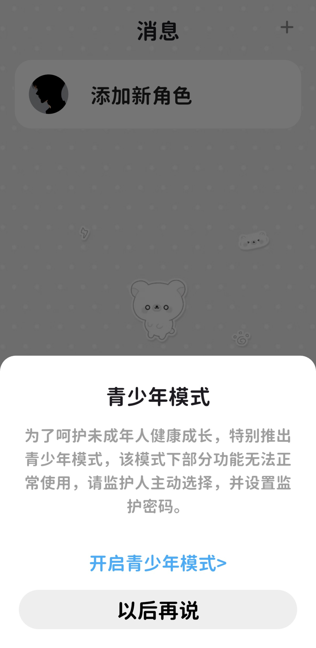如果用户主动开启未成年人模式,可玩性受限会大幅缩水。记者体验发现,筑梦岛App在未成年人模式下,每日使用时长累计不超过40分钟,晚10点至次日早6点无法使用,平均每15分钟提示一次休息,单次保护性限制充值不得超过50元,每月累计充值不得超过200元;进入未成年人模式后,猫箱App中可对话的AI角色只剩下4个,分别是物理老师、作业帮手、英语老师和古文讲解AI,点赞、转发、评论等功能均受到限制。