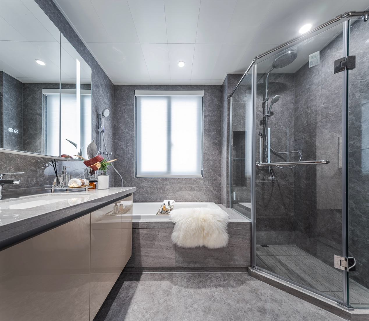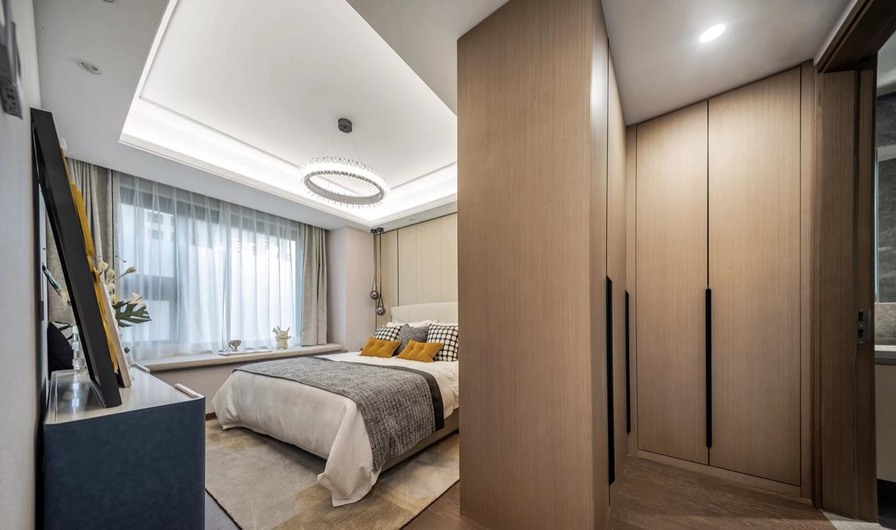 餐客厅一体化设计,客厅开间约4米,南向双阳台开间约7米。而主卧的尺度可用奢侈二字形容,在市面上的同等面积户型中,天萃的140㎡做到了超21㎡的南向主卧,而主卧的卫浴更是配齐四件套,增设浴缸,让调性一下子拉满!