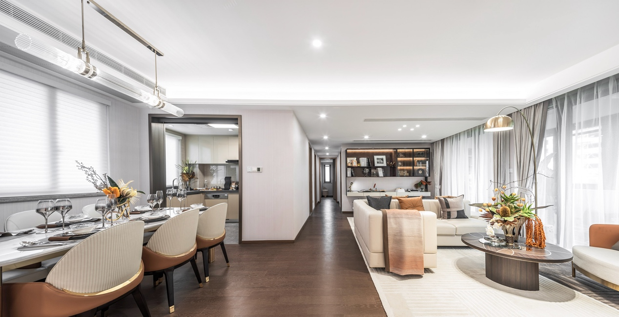 再来看看建面约140㎡四房两厅两卫,作为全新户型代表,更适合二胎家庭,方便老人前来照顾。“大开间 短进深”的现代设计,以南向约13.6米的开间,深深俘获南京人的心。