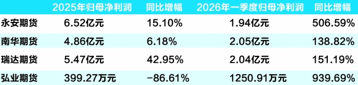 4家上市期货公司2025年与2026年一季度业绩