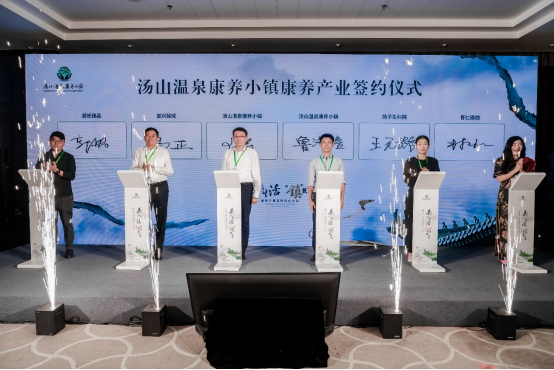 本次发布会最重要的环节,由江苏苏豪健康产业有限公司党总支书记、董事长王涛先生,汤山温泉康养小镇项目总经理鲁济榕先生代表小镇公司,分别和扬子生科院、复兴骏成运动健康管理中心、育仁美尚文化艺术中心、郭氏臻品的产业方负责人签订了合作协议,整合各方资源助力小镇康养产业再攀高峰。